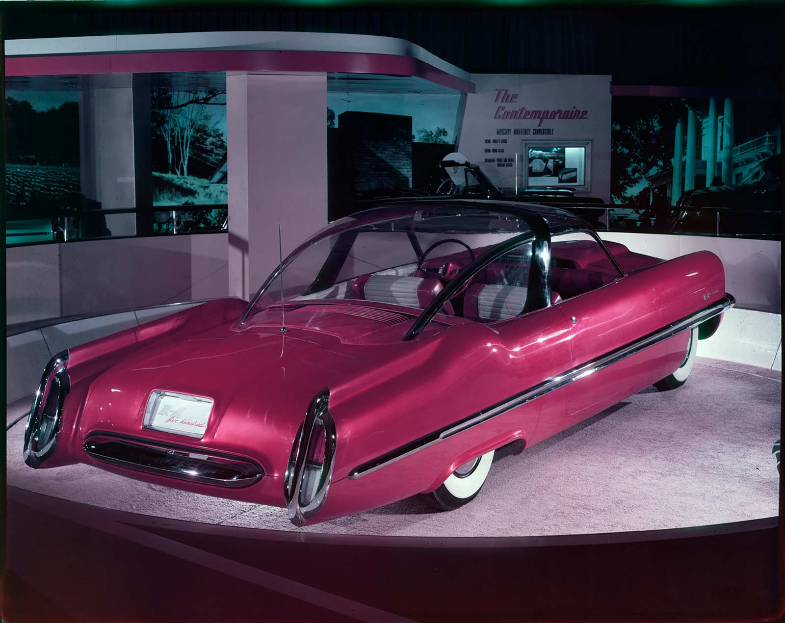 Externally, the XL-500 was a sight to behold with its scarlet fiberglass body and plexiglass roof. Standing at less than 57 inches high, the car featured arched rear fenders that allowed more space for the wheels, giving it a closer-to-the-road profile. The separation of the front grille and bumper into two units, along with a functional air scoop on the hood, lent the XL-500 an unusual front end appearance that was ahead of its time.