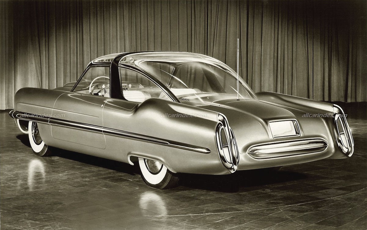 Inside, the XL-500 was designed to comfortably accommodate four adult passengers, a feature not often seen in sports car designs of that era. The interior boasted white and red leather upholstery, showcasing a blend of highly advanced engineering and styling devices. The hub of the steering wheel featured push buttons for operating the automatic transmission, eliminating the need for a conventional gear shift lever and making the car's operation completely automatic.