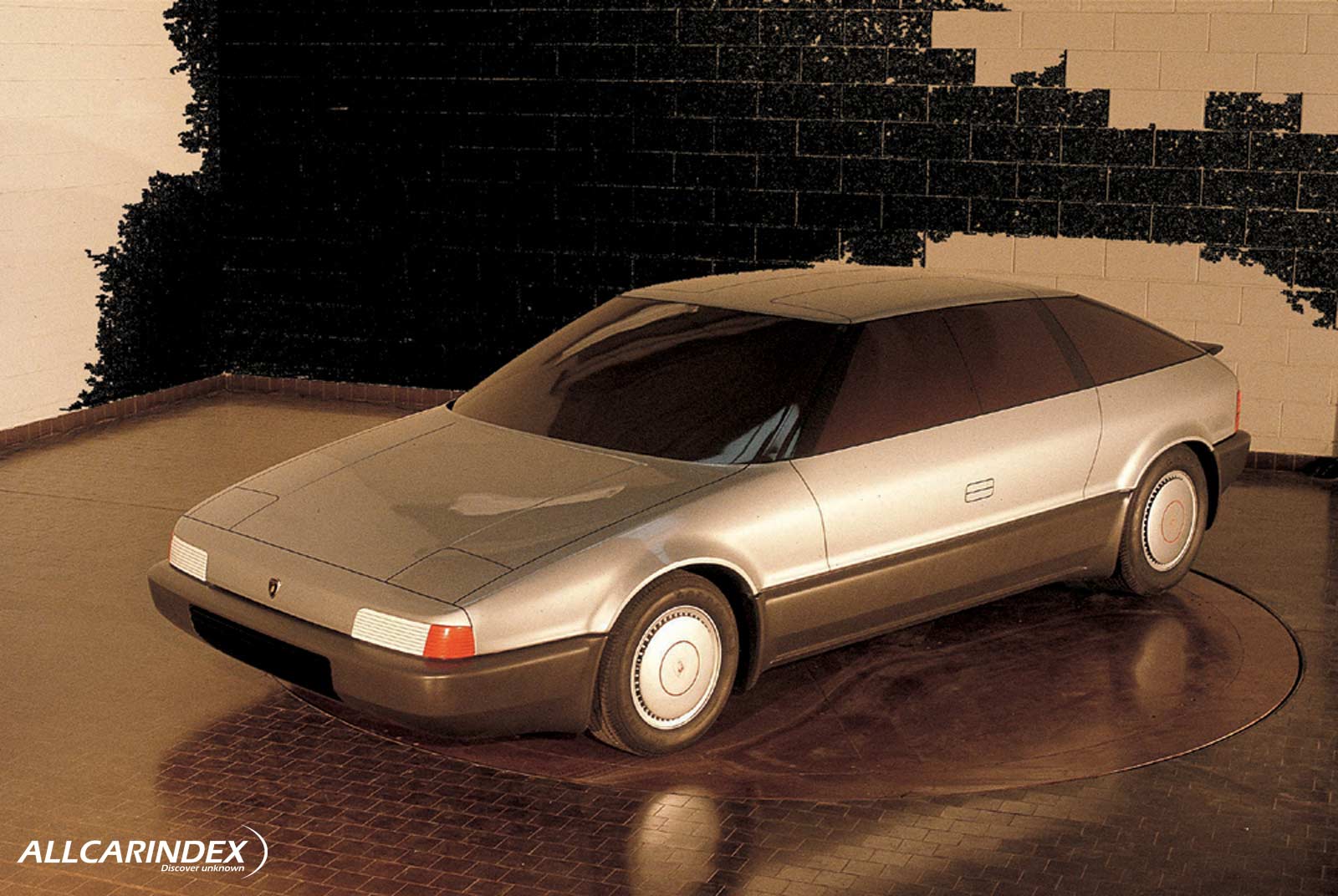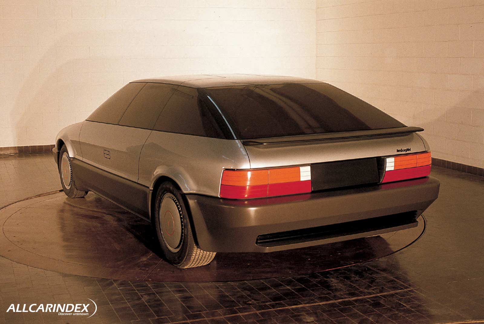 With its fastback silhouette and two long gullwing doors, the Marco Polo combined experimental design with a sedan layout. It measured 457.5 cm in length, 187 cm in width, and 130 cm in height, riding on a 275 cm wheelbase with track widths of 160 cm at the front and 158.5 cm at the rear. The body achieved a drag coefficient of just 0.24. Although non-functional, the model was envisioned for a longitudinally mounted Lamborghini V12 placed ahead of the rear axle.