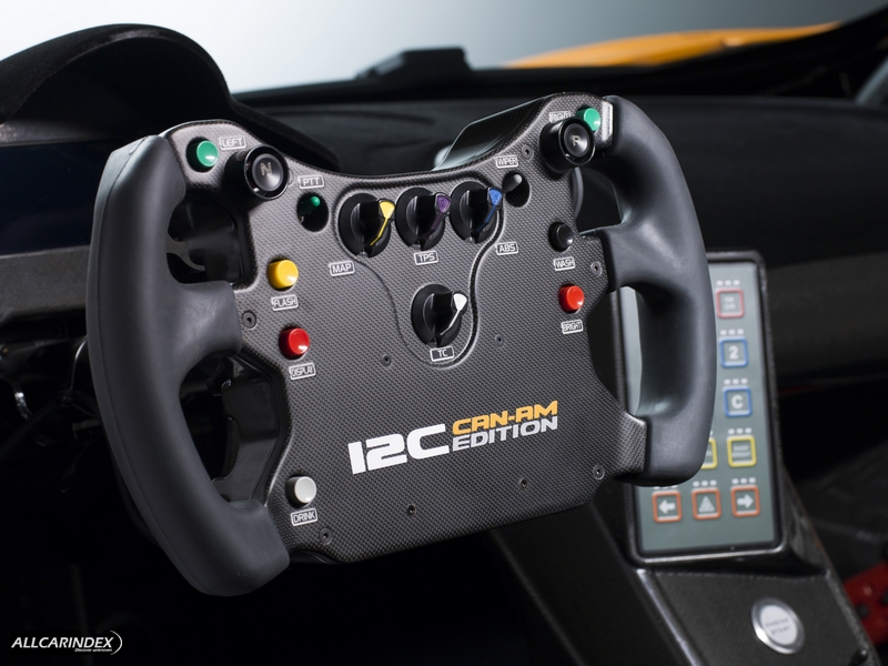 Sharing the same carbon fibre MonoCell chassis as the groundbreaking 12C and 12C Spider, the 12C GT Can-Am Edition is also fitted with a full FIA-approved race-specification rollcage. Inside the cockpit are two black race seats, complete with full six-point harnesses, and a unique McLaren GT steering wheel carried over from the 12C GT3 race car. The shape and grip of the steering wheel is derived from the McLaren MP4-24 Formula 1 car. An integrated motorsport air conditioning system is incorporated into the bespoke lightweight carbon fibre dashboard adding a touch of racer comfort.