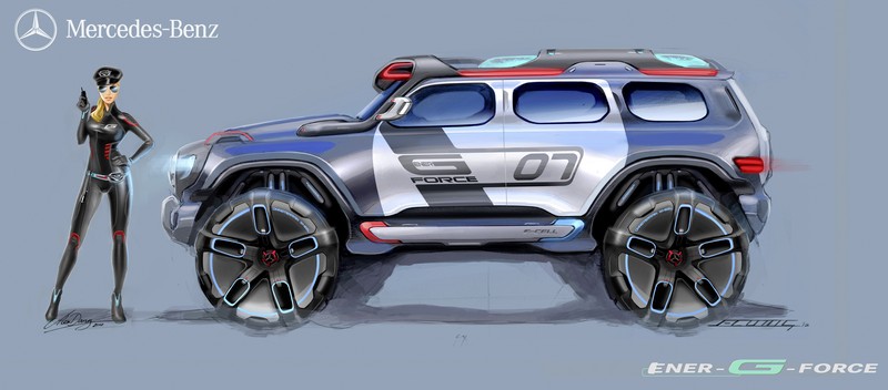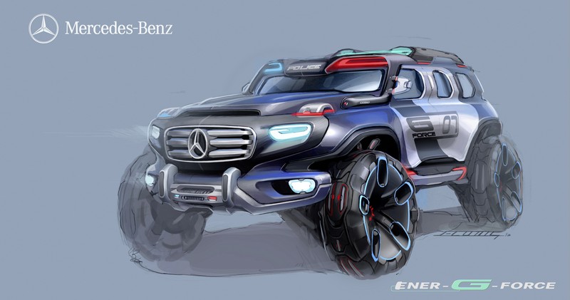 as an environmentally friendly suv, the ener-g-force, which mercedes-benz is presenting in los angeles as a design study, meets these requirements and would be fully capable of supporting police and emergency services in every corner of the world. gorden wagener, director of design at mercedes-benz cars: “the ener-g-force is the vision of an off-roader that, while reflecting tomorrow’s adventures, also invokes the genes of the mercedes-benz off-road icon, the g model. modern and cool, it could also be a clue about a new beginning for the off-road design idiom of mercedes-benz”.