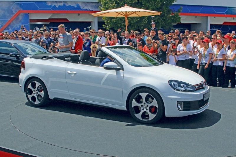 golf gti cabriolet: following its world premiere at the geneva international motor show, gti fans visiting the legendary wörthersee event will have the chance to experience close up the dynamic advantages and sophisticated equipment features of this sports car from wolfsburg. the key component of this highly dynamic soft top golf is the 2.0 l engine with 155 kw / 210 ps fitted for the first time in the cabriolet. it is available with two engine/gearbox versions: as a manual gearbox or with the fast-changing dual-clutch gearbox (dsg), each with 6 speeds. a standard feature for all customers who get to indulge in the sporty driving performance of the golf gti cabriolet is the xds electronic differential lock on the front axle, which ensures perfect traction, enhanced agility and the utmost driving stability. to complete the picture, this hot hatch is fitted with 17-inch alloy wheels of the type ‘denver’ (18-inch wheels of the type ‘detroit’ are optionally available) in addition to a new diffuser with chrome tailpipes.