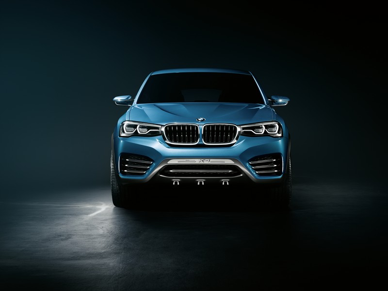 the qualities of a bmw x model merge with the values of a bmw coupe in the muscular silhouette of the bmw concept x4. its proportions present a persuasive case for the bmw concept x4 as the most dynamic vehicle in its segment. in hallmark bmw style, a longer wheelbase, relatively long bonnet, short overhangs and a set-back greenhouse lend the car an undeniable dynamism even when standing still. the striking interplay of surfaces creates a vibrant contrast of light and shadow that exudes a feeling of agility and power. prominently rising lines mould the flanks into a wedge shape and give the car as a whole a forward-surging momentum.