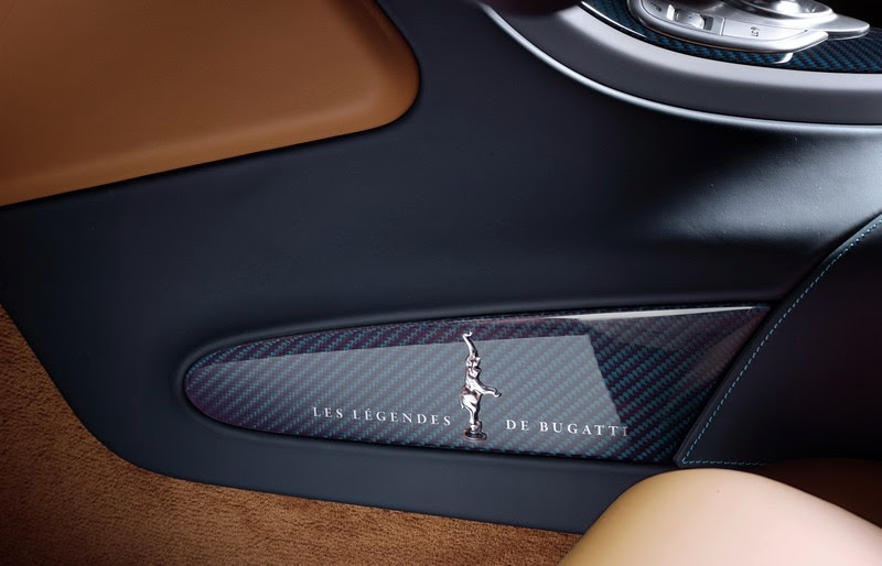 the vitesse legend “meo costantini” also shares several features with the other legend cars in the edition, including the inlay in the extended section of the center console, crafted of clear-coated carbon fiber and sporting the legend logo with the famous bugatti elephant, and the door sill strips displaying the likeness and signature of meo costantini.