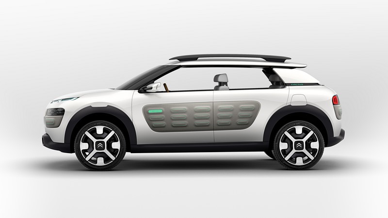 the cactus concept features citroën’s revolutionary new hybrid air drivetrain – a full-hybrid, compressed air and hydraulics system – which is combined with a puretech engine to deliver exceptional fuel economy in excess of 94mpg (under 3l/100km).