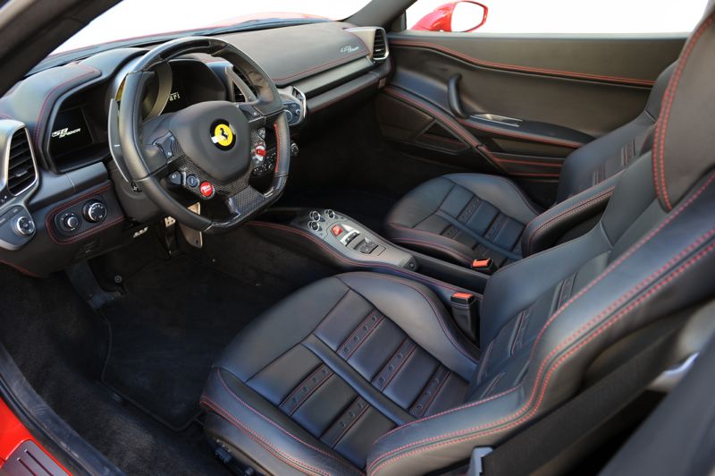 At the other end of the self-contained charge-cooling loop is a rear-mounted heat exchanger, paired with dual electric fans that work to reduce inlet temperatures that come with a maximum boost pressure of 7 psi, and holding 6 psi through the 4.5-liter V-8's 9000-rpm redline. A Hennessey reflash of the engine-control computer works in concert with the Ferrari's direct injection to optimize fuel delivery and spark. Overall, it's an elegantly engineered system, finished to Ferrari standards and expertly packaged in the 458's tight hindquarters.