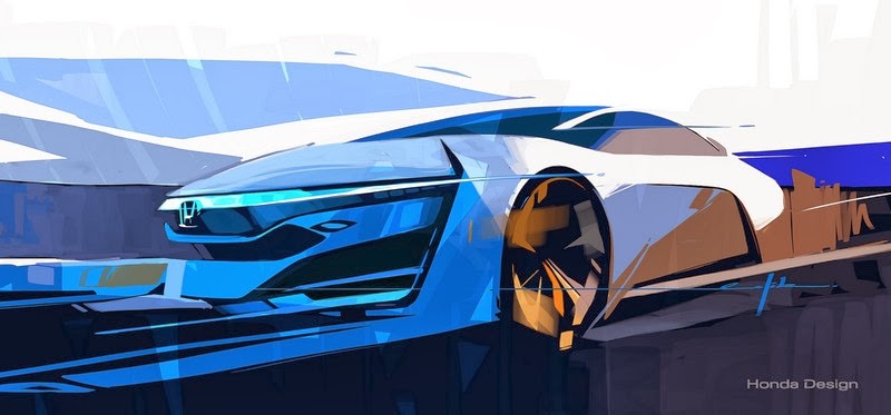 honda fcev concept sketch hints at futuristic and aerodynamic design of next-generation fuel-cell electric vehicle launching in 2015