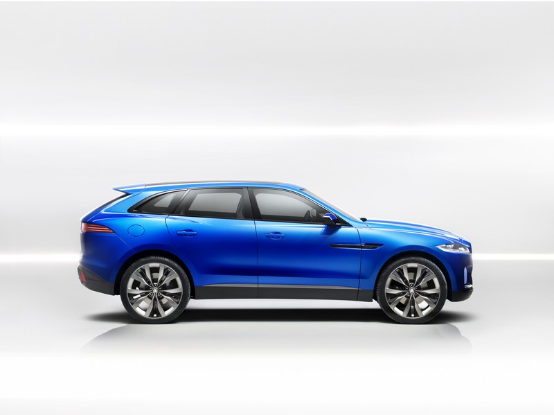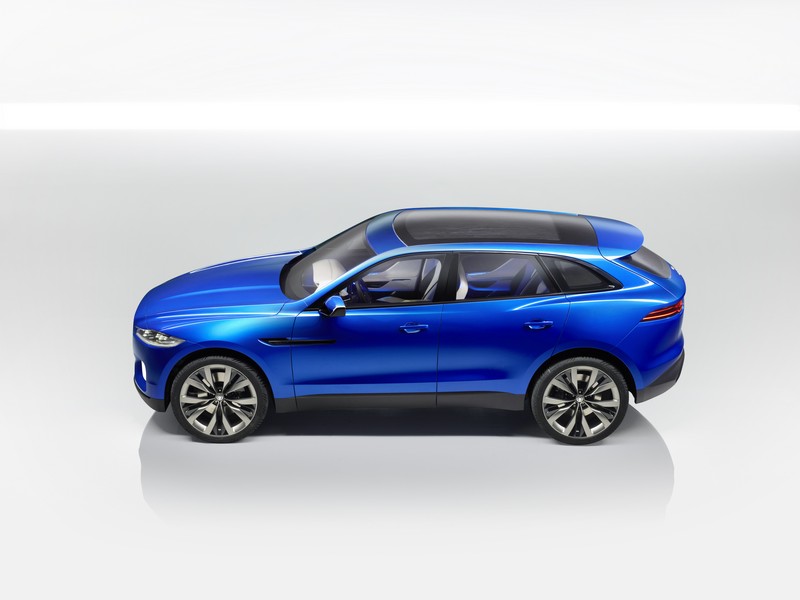 at 4,718mm long and 1,649mm tall, its dimensions are clearly that of a crossover, yet in its design it shares strong family traits with jaguar’s current range. for instance, the grille is an evolution of the distinctive nose of the jaguar xj luxury sedan, while the sculptured haunch lines hint strongly of the award-winning design of the jaguar f-type sports car. a low-sitting stance and overall profile combine with 23-inch alloy wheels to give the c-x17 a sporting, aggressive presence, while the led headlamps, j-shaped running lights and frosted-glass foglights set into the large front intakes add to the c-x17’s purposeful intent. the c-x17 is painted in a lustrous caesium blue finish, with gloss black brightwork surrounding the windows, while the split five-spoke alloys are dark atlas graphite with gloss black finishers.