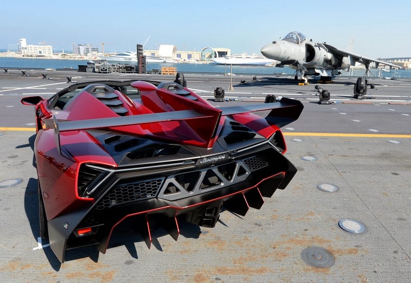 the lamborghini veneno roadster made its public debut on board the italian naval aircraft carrier nave cavour on 1 december 2013.