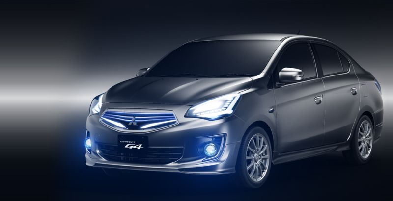 the mitsubishi concept g4 is a vision for a new compact sedan which mmc plans to roll out globally. the mitsubishi concept g4 uses a high-clarity brilliant-cut diamond motif in the design of the front grille, headlamps and rear combination lamps to create a frontal visage with a commanding presence and a tail end which leaves a sharp impression as it drives off into the distance.