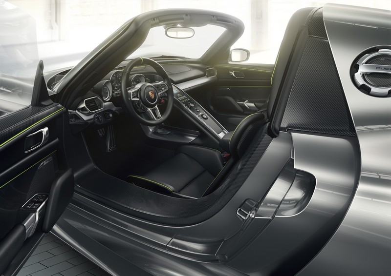 as a super sports car designed for everyday use, the 918 spyder offers a spectacular top-down driving experience. the two roof panels made from carbon fibre-reinforced plastic (cfrp) are removable, as is the tradition at porsche, and can be stored securely in the 100-litre capacity luggage compartment located in the nose of the vehicle.
