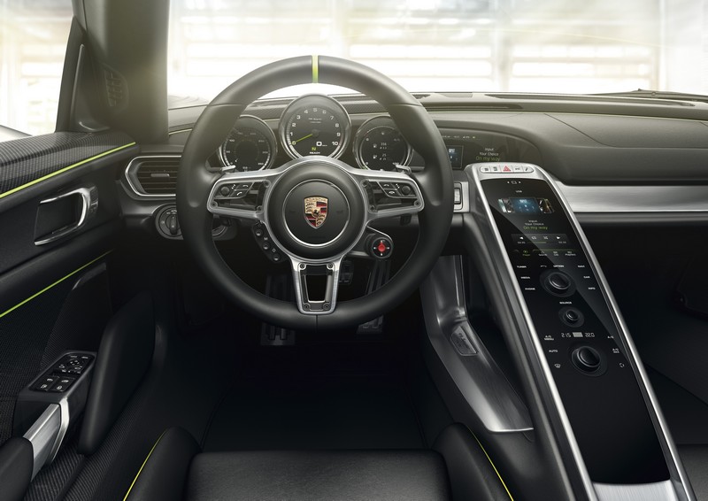 the centrepiece of the 918 spyder is the distribution of propulsive power across three power units, all of which are integrated and controlled via an intelligent management system. to benefit as much as possible from the coverage offered by the different systems, the porsche engineers at the company’s weissach research and development centre have defined a total of five operating modes, which can be activated via a map switch in the steering wheel, just like in race cars. using the pre-selected mode, the 918 spyder applies the most suitable operating and boost strategy without any further intervention from drivers, thus allowing them to concentrate fully on the road.