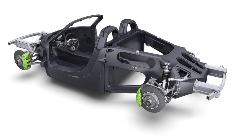 body: two-seat spyder; carbon fibre reinforced plastic (cfrp) monocoque interlocked with cfrp unit carrier; two-piece targa roof; fixed roll-over protection system