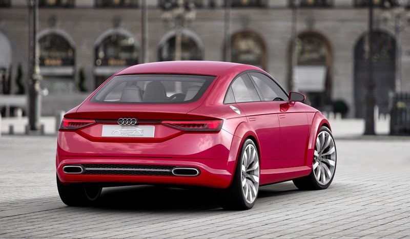 the rear of the audi tt sportback concept is also focused and sculptural, with five horizontal lines emphasizing its width. the one-piece rear lights – which also include vertical separators inspired by the r18 – form independent structures. these are linked to one another by the handle edge of the luggage compartment, which constitutes a powerfully contoured continuous trim. the surface that bears the number plate is located in the shadow of the spoiler lip. the two large elliptical tailpipes of the exhaust system are embedded in the diffuser and linked by a trim.