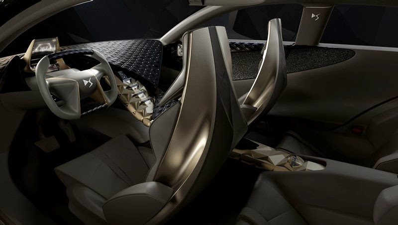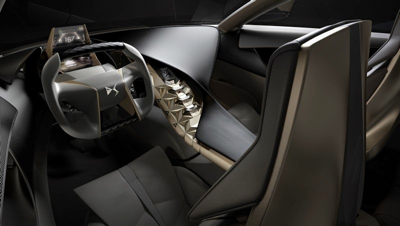 - technology contributing to style: divine ds is a car of dynamic, active design, with futuristic, avant-garde headlights combining sequential indicators with laser technology, facets on the roof that open to reveal a reversing camera, and optimised aerodynamics. inside the car, the ‘cockpit’ driving position and exclusive use of digital systems (touch screen, holographic display, etc.) showcases the in-car technology.