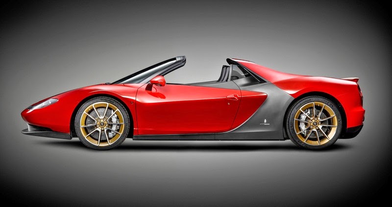 regarding the production version of the sergio supercar, it has received an obvious restyling and it looks more like a rebody of the 458 spider than a showcar pininfarina presented at geneva. the car lost most of its dramatic stance. it got a windshield, a complete rework of both ends, especially rear end, where its taillights have been replaced with 458 spider‘s ones. also, it got two separates exhausts instead of a central one found on the original sergio concept. surely, it also lacks scissor doors – a nice feature found on pininfarina‘s vision.