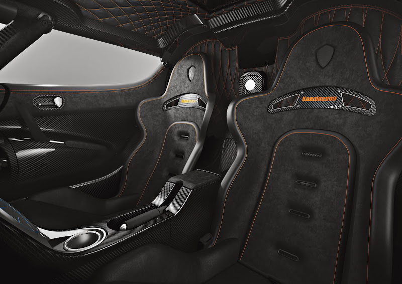 • Koenigsegg developed carbon fiber ventilated memory foam racing seats