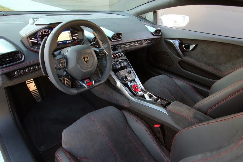 the uncompromising precision and attention to detail with which the interior of the lamborghini huracán lp 610-4 is crafted, is rooted in the finest tradition of italian craftsmanship and sets new benchmarks in the league of super sports cars. luxury materials indulge the senses with their fine look and feel; their selection and the choice of colors on offer are clear evidence of the fine touch and keen eye of the lamborghini designers. the upper area of the dashboard is clad in dark alcantara to avoid reflections in the windshield. leds provide the interior illumination, too - there is not as single conventional bulb anywhere on or in the car.