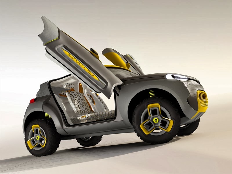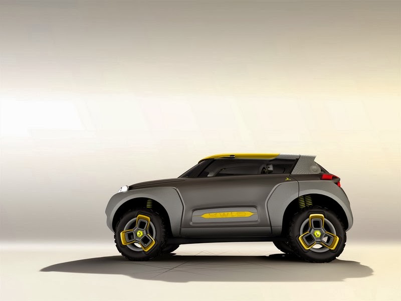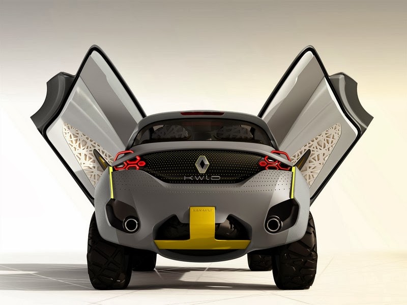the kwid concept was designed with inputs from renault design india and is covered by the ‘explore’ petal of renault’s lifecycle-based design strategy. the vehicle’s exciting proportions and dimensions as well as very short overhangs give the impression of a bouncing vehicle, while its oversized wheels protrude past the fenders and make the kwid concept look like a buggy car.