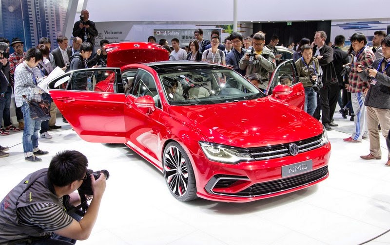 it's a four-door coupé the like of which has never been seen before in this vehicle class: the new midsize coupé concept car. volkswagen has brought the concept car to beijing for its world premiere at auto china 2014. the 'new' part goes without saying: the new midsize coupé is as new as a new car can be. 'coupé' is also unambiguous: the new midsize coupé is low in height (1,422 mm) and very wide (1,838 mm), it has a low visual centre of gravity, short overhangs, muscular shoulders and side sections, a dynamic roof line with markedly swept-back c-pillars, a short boot lid and long bonnet. 'midsize' is less obvious. it is normally the term for a car of the passat class. however, the concept car is just 4,597 mm long and thus shorter than a passat and shorter even than the jetta. however, as mentioned the concept car outdoes the other two in terms of its width – and it is thus midsized. so clearly this concept car exhibits proportions of an extremely sporty nature. the team led by volkswagen head designer klaus bischoff integrated these sharp proportions in a body design that makes the new midsize coupé a powerful and avant-garde proponent of a new, compact saloon class.