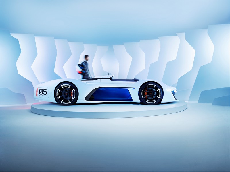 the full-scale version of the alpine vision gran turismo immediately impresses through its unusual proportions, while visibility from behind the wheel is perfect with nothing in the line of sight.