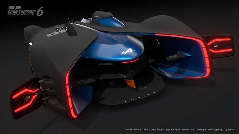 the alpine vision gran turismo will be made available as part of a free update of gran turismo® 6 for playstation® 3 in march 2015. to discover the car, players will select ‘vision gt’ on the ‘my home’ page. after choosing the body colour, you will be able to admire your acquisition in full-screen mode, along with a detailed description. it will also be possible to view videos and sketches starring the alpine vision gran turismo before you take part in your first race…