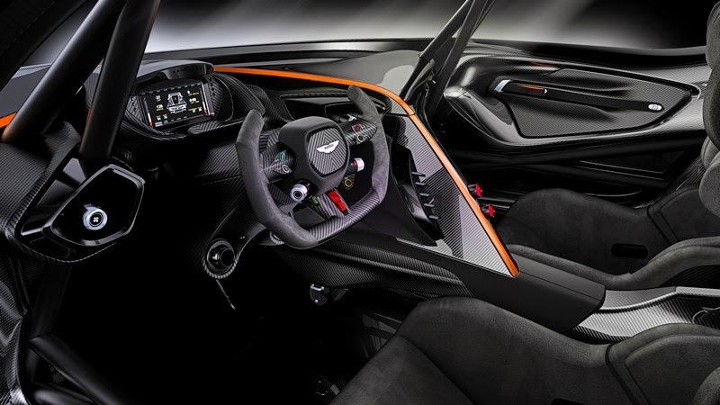 comprising cutting edge engineering including that sourced from the brand’s successful gt racing campaign, the car features a carbon fibre monocoque and body constructed by aston martin’s long-term specialist body engineering and manufacturing partner multimatic, integral limited-slip differential, magnesium torque tube with carbon fibre propeller shaft and brembo racing calipers acting on carbon ceramic racing disc brakes which measure 380mm in diameter at the front and 360mm at the rear.