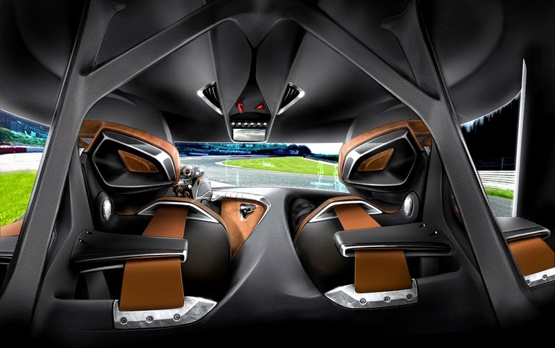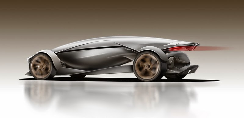 At first glance, the car is decidedly low and wide and sporty, but the total lack of external glass places it into the future, inviting observers to ask how the driver/passenger can see out from inside. The answer is a set of obstruction free, 360°wraparound monitors that eliminate all blind spots created by traditional automobiles with pillars blocking the drivers view.