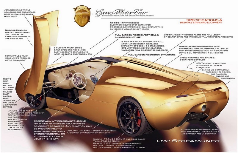 Nevertheless, the startup supercar company continues to amaze with further performance figures. The car weighing 1406 kg will be able hit 60 mph (96 km/h) in just 2.2 seconds, 0-100mph (160 km/h) in just 4.4 seconds and will be able to develop an estimated top speed on 290 mph. Right… 290 mph which equals to 466 km/h. As a reminder, a proposed top speed of the nearest megacar contender - Koenigsegg One:1 – is 440 km/h while Hennessey Venom GT smashed the Guinness World Record at 270.49 mph (435 km/h). These are incredible figures which make Lyons LM2 Streamline look like either a dark house by an unknown company or an absolutely pompous pipe-dream.