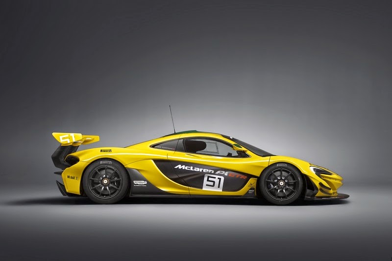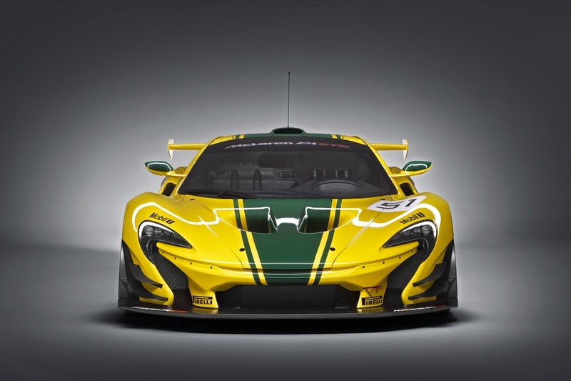 the front track is 80mm wider than the road-going mclaren p1™ and with its aggressively profiled front splitter, the also car sits 50mm lower to the ground on centre-locking 19-inch motorsport alloy wheels shod with pirelli slick tyres. the lower bodywork is trimmed with a sleek aerodynamic blade as previewed on the design concept, which cleans the flow of air along the car’s flanks.