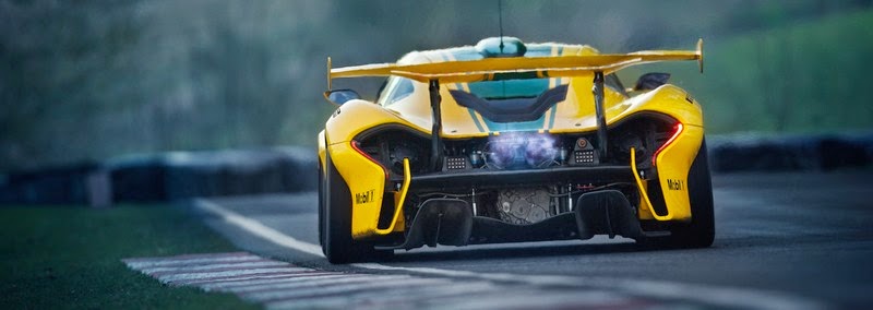 the rear of the track-only model is dominated, in contrast to the road-going mclaren p1™, by the presence of a fixed-height wing which sits more than 400mm above the sculpted rear bodywork – an increase of over 100mm of the adjustable wing on the road car. working in conjunction with the front-mounted aerodynamic flaps ahead of the front wheels, the rear wing helps to increase downforce levels by more than 10 percent – meaning up to 660kg at 150 mph. mounted on light weight carbon fibre pylon supports, the wing retains the drs (drag reduction system) of the road car, which trims the pitch from 32° to 0° at the push of the button on the steering wheel. another bold and differentiating feature at the rear are the large twin exhaust pipes, formed from an inconel and titanium alloy. this system saves in excess of 6.5kg over the already light road-going system.