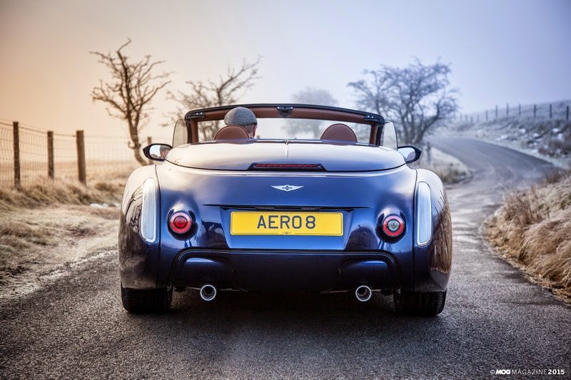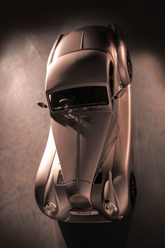 styling of the new aero 8 was influenced by classic open cars from the 1960s, reflecting a trend of long, fast and low shoulder lines and cabin focused body work. from above, the view echoes that of a boat deck, enhancing the sense of adventure and escapism.