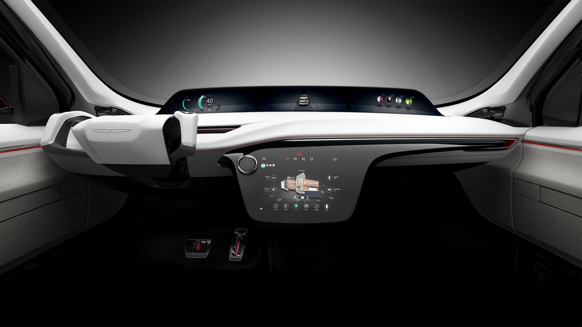 designed from the inside out, the interior of the chrysler portal concept offers the driver and passengers a “third space” – an open and serene atmosphere that provides an alternative environment between work and home.