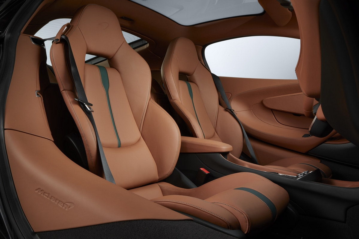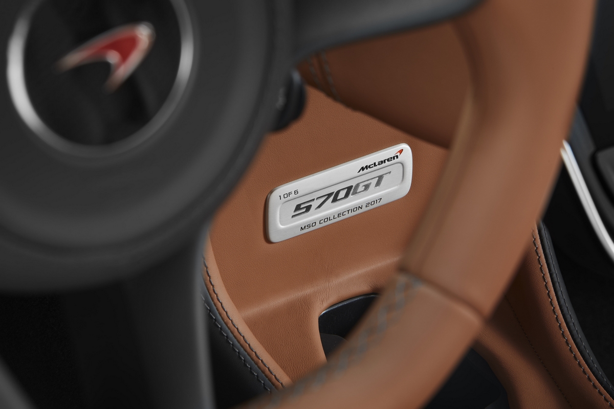 a limited number of bespoke mclaren 570gt models will this month become available to a fortunate few mclaren buyers in the uk and europe. commissioned from mclaren special operations as an mso collection, the six cars are finished in mclaren historic ‘xp green’ exterior paint – the same colour as the famous f1 xp gt ‘longtail’ homologation model built in 1997. the saddle tan leather interior additionally features green leather inserts in the seats and green contrast stitching, as well as a dedication plaque mounted on the centre tunnel beneath the infotainment screen identifying each car as one of six in the collection.
