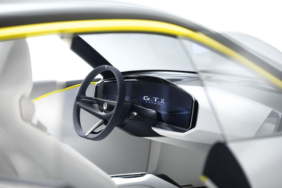 The Vauxhall GT X Experimental’s airy interior adopts the same ‘visual detox’ principle as its exterior. Surrounded by the panoramic windscreen/roof and uninterrupted side-window, the cabin artfully disguises the raft of innovations contained within it. A standout feature is an instrument panel encased in a module, which mimics the outer Visor, and is called the ‘Pure Panel’. A wide, single screen welcomes drivers and eschews the need for a multitude of smaller screens and buttons, as seen in many production cars today. The Pure Panel allows drivers access to all the GT X Experimental’s technology, without any unnecessary distractions.