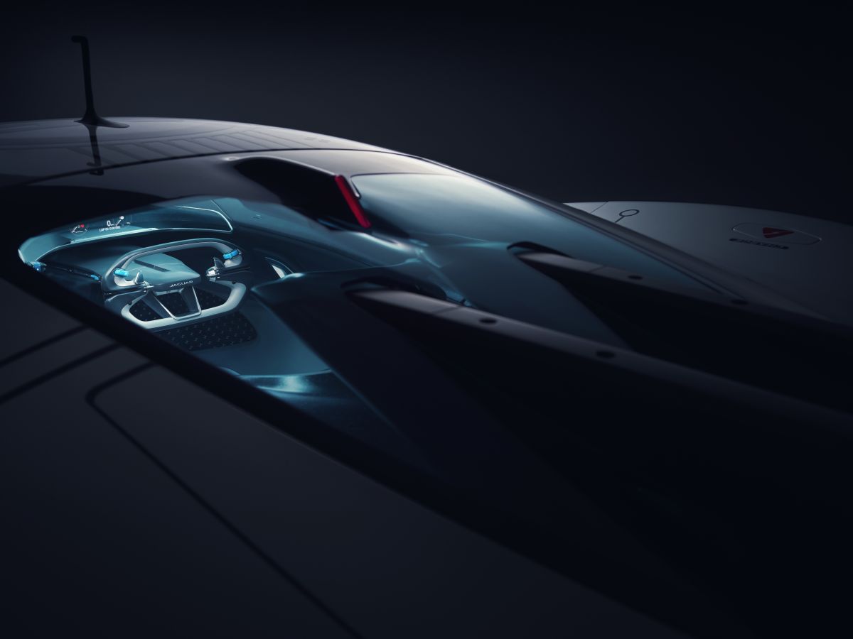 - Real-world design study: Full-scale model built by Jaguar Design to showcase the most radical interpretation yet of an all-electric Jaguar race car