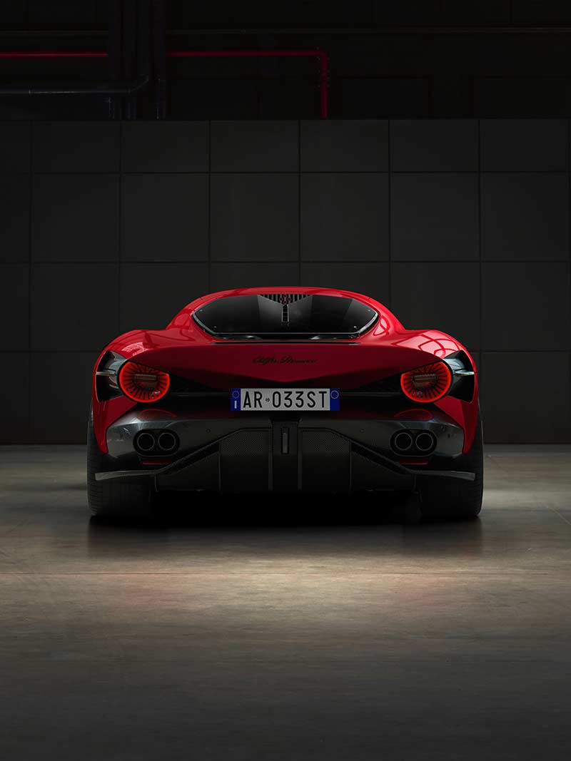 Inside, two trim options, Tributo and Alfa Corse, reflect the car's legacy while embracing modernity. The driver-oriented concept, the inclusion of aviation-inspired mechanical details, and enveloping seats create an exclusive and comfortable environment.
