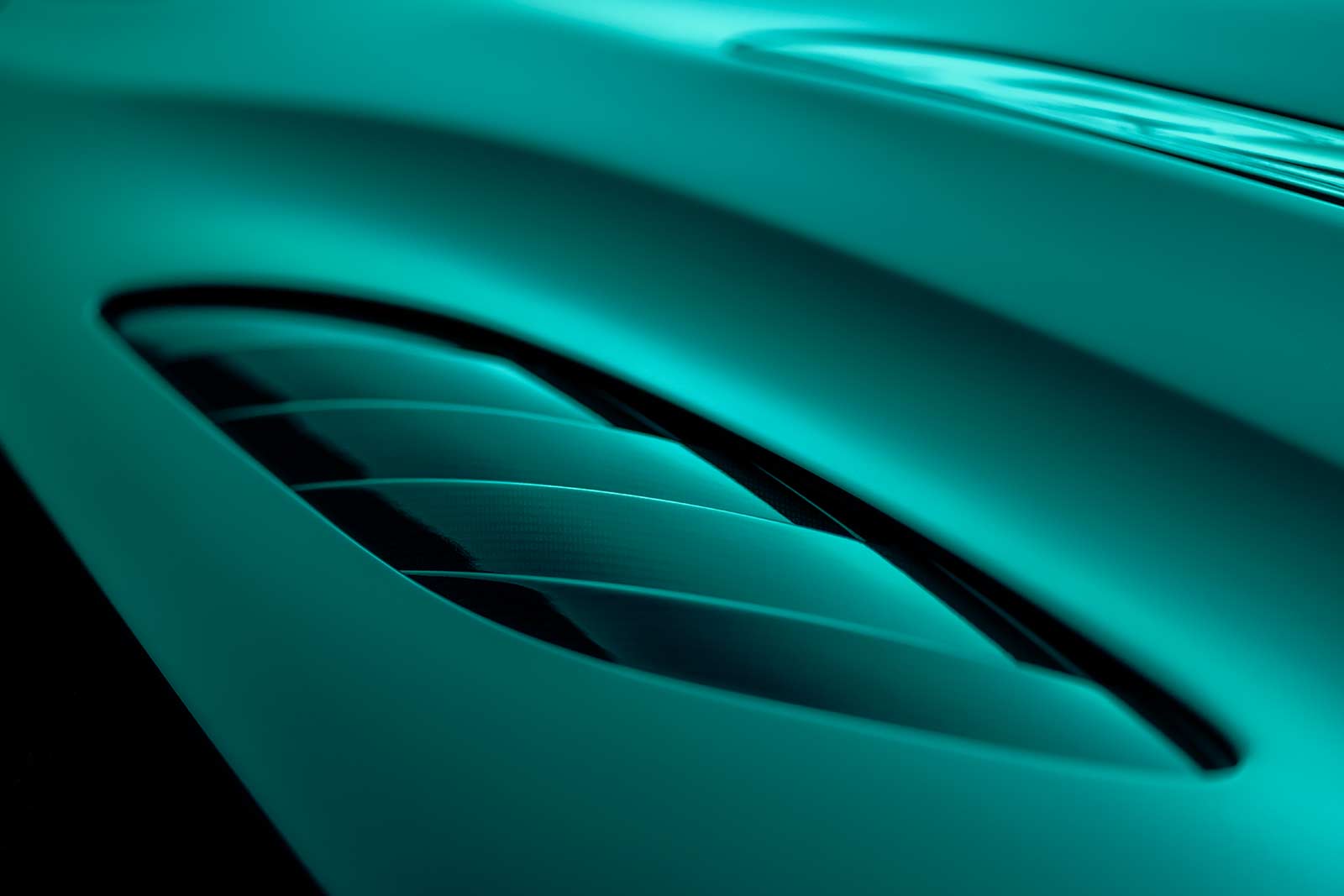 Being an Aston Martin, this enhanced form also had to possess an authentic level of function. Both to provide increased air flow to the radiators, enhancing thermal management and give greater visual road presence. Drawing increased air flow through the engine radiators, the clamshell bonnet features a dramatic ‘horse-shoe’ engine vent and a new front splitter integrates two new outboard vents. Together these serve to enhance cooling and echo the design signatures of previous DBS and V12 engine models.