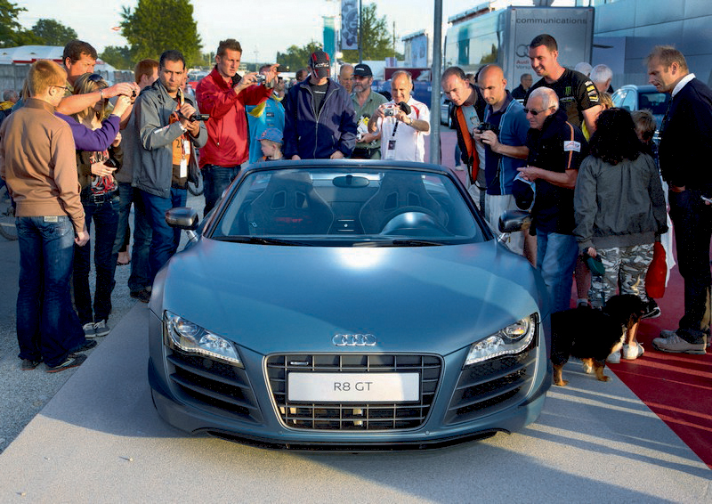 one year ago, audi unveiled the r8 gt in coupe form as the new flagship model of the r8 model line. it wasn’t long before all 333 units in the limited series were sold out. now the open-top version of the high-performance sports car is being launched, with production again capped at 333 units. each car sports a tag with its individual number on the gear lever knob.