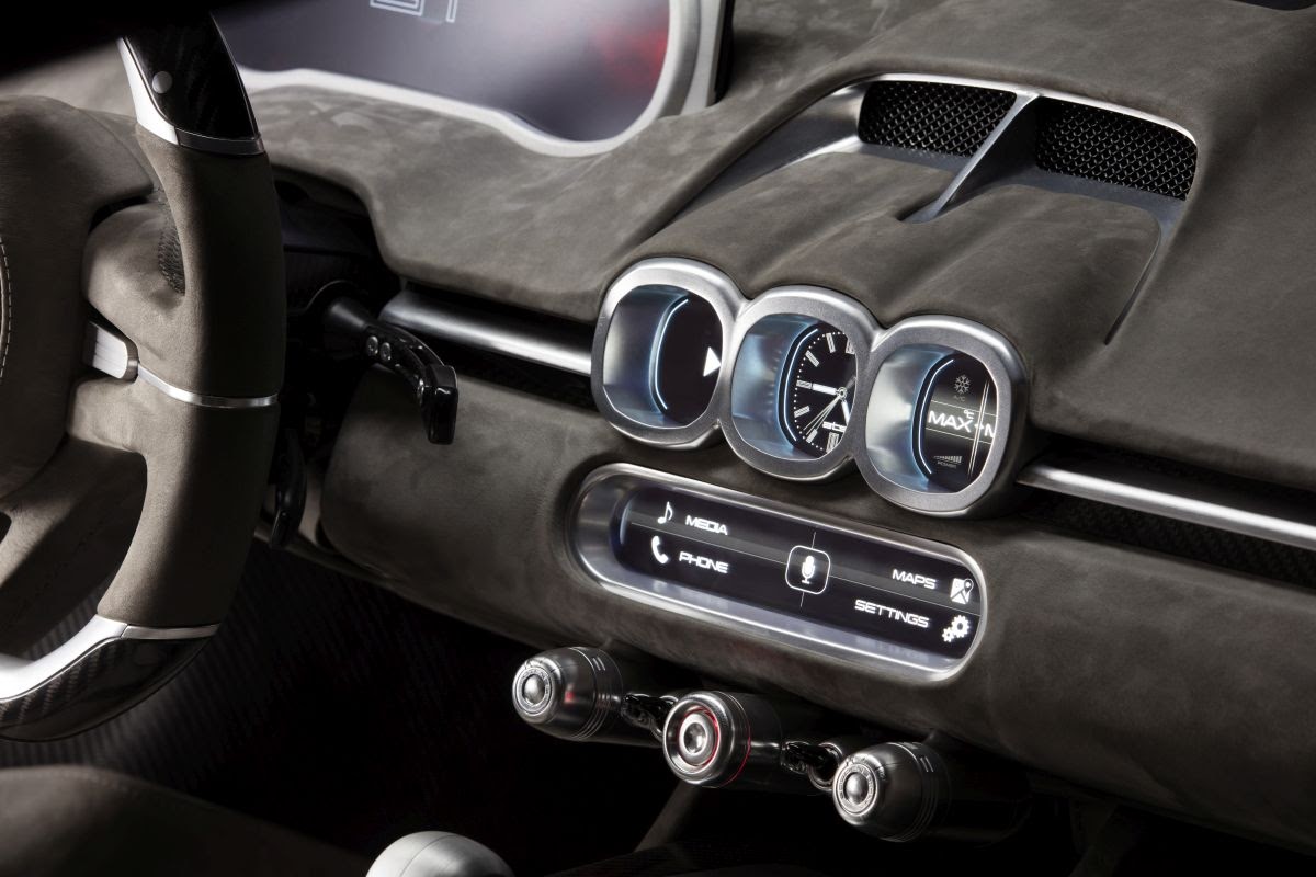 True to the nature of every gran turismo, the GT is the project of a fine automotive atelier: the research of details has produced a car that will be regarded as an instant collectible to fine connoisseurs. Inspired inside by the simplicity and minimalistic style of the classic Italian cars, all the interior switches that control the sophisticated and numerous on-board systems have been simplified and reduced to a bare minimum in order to be more intuitive to use while driving and make a welcoming and luxurious environment inside.
