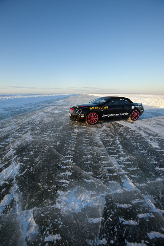 (Oulu, Finland. 15 February 2011) Finland’s four-time world rally champion Juha Kankkunen drove a Bentley Continental Supersports convertible on the hazardous frozen waters of the Baltic Sea, off the coast of Finland, at a breathtaking 205.48 mph (330.695 km/h) to set a new world speed record on ice.