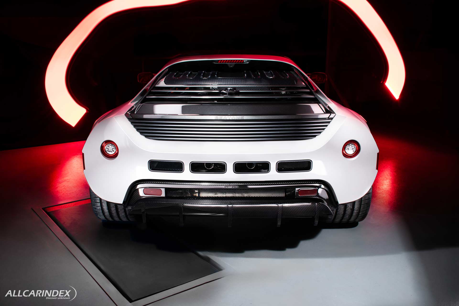 The rear section presents a modern interpretation of the coda tronca, reduced to essential geometry. Four rectangular apertures define the rear graphic, with exhaust outlets integrated into two of these openings. Forged aluminum wheels draw direct inspiration from the original 1969 concept.