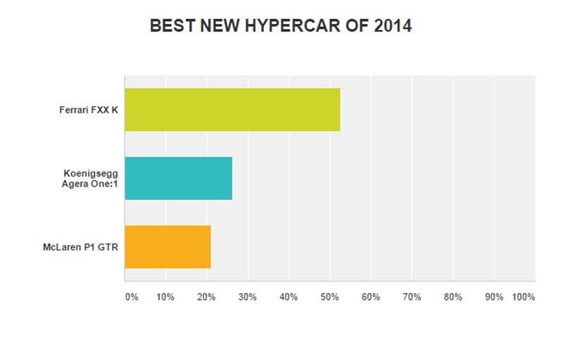 Finally, the winner of the toughest competition in the category BEST NEW HYPERCAR OF 2014 is the FERRARI FXX K (53% of responses).