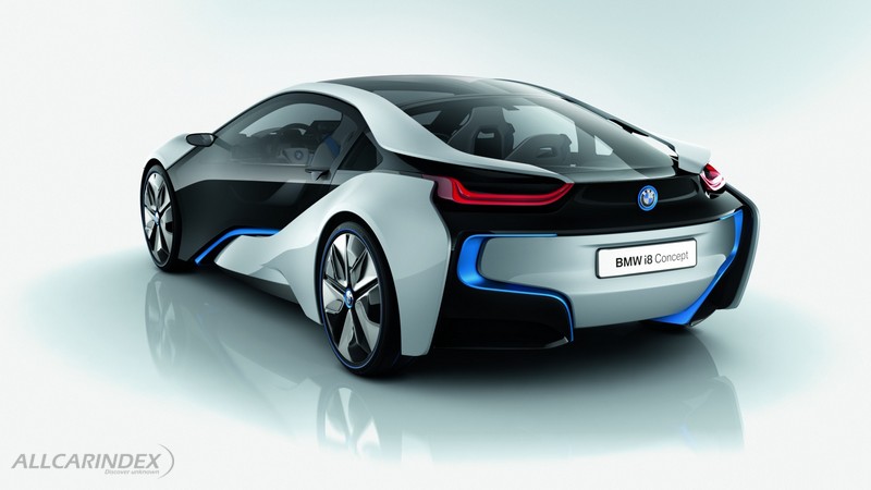 the bmw i8 concept and the fascinating approach that underpins it embody the vision of a sustainable contemporary sports car brought to life. its innovative plug-in hybrid concept combines the modified electric drive system from the bmw i3 concept – fitted over its front axle – with a high-performance three-cylinder combustion engine producing 164 kw/220 hp and 300 nm (221 lb-ft) at the rear. working in tandem, they allow the two drive systems to display their respective talents to the full, delivering the performance of a sports car but the fuel consumption of a small car.
