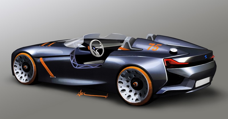 the expressive exterior design of the bmw 328 hommage depicts the modern interpretation of a highly emotional and dynamic two-seater roadster – just like the bmw 328 75 years ago. “hommage cars have a long tradition in the bmw group. based on our design philosophy “rooted in history, moving for-ward in design”, they demonstrate the significance of history for the present. even 75 years ago, the bmw 328 stood for sportiness and agility through light-weight construction. the bmw 328 hommage car pays tribute to this past and shows how bmw lightweight construction will develop. carbon is the material of the future.” (adrian van hooydonk) in keeping with its role model, the bmw 328 hommage has a streamlined design and is clearly recognisable as a sports car. precise lines run across all of the car body’s taut surfaces. as a result, a subtle contrast between the tense surfaces and the sharp edges is created within the flat, dynamic silhouette. the strong wedge shape accelerates the ve-hicle even when it is at a standstill, the scoops behind the seats take up the lines coming from the bonnet, guiding them dynamically into the rear end. the struc-ture of the cfrp mats gives the vehicle an appearance of depth, the diagonal lines of the woven cfrp additionally underscoring the dynamic design vocabu-lary of the roadster. thanks to concise weaving, the carbon structure is clearly visible, optically emphasising the lightweight construction principle. like the first bmw 328 test vehicles, with which the model celebrated its triumphant debut on the racetrack in 1938, then going on to gain a number of further successes, the bmw 328 hommage has no doors. then as now, deep recesses allow ac-cess to the inside of the car. the extremely wide and flat front end is strongly three-dimensional, generous surfaces and concise lines give the front end a powerful appearance. viewed from the front, the cfrp bonnet appears to en-compass the vehicle from above. it embraces the vehicle, framing the slightly set back front end in a very distinctive downward sweep. due to the almost vertical, low-reaching sidewalls, it simultaneously emphasises the bmw 328 hommage’s excellent stability on the road. as a result, the vehicle appears to be even flatter and more dynamic as a whole. under the bonnet, further surfaces rise to embed the top and bottom of the distinctive kidney grille, whilst folding themselves around it to shape the adjacent air intakes. openings and large air intakes create visual lightness at the front, simultaneously demonstrating the high air require-ment of the powerful three-litre, six-cylinder engine. three-dimensionally de-signed lattices inside the front vents form a connection between the headlamps and the kidney grille, with the three-dimensional lattice structure acting as an accentuating feature.