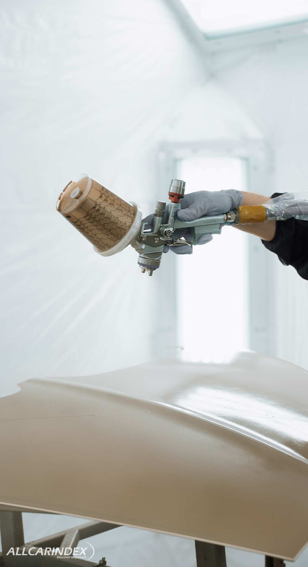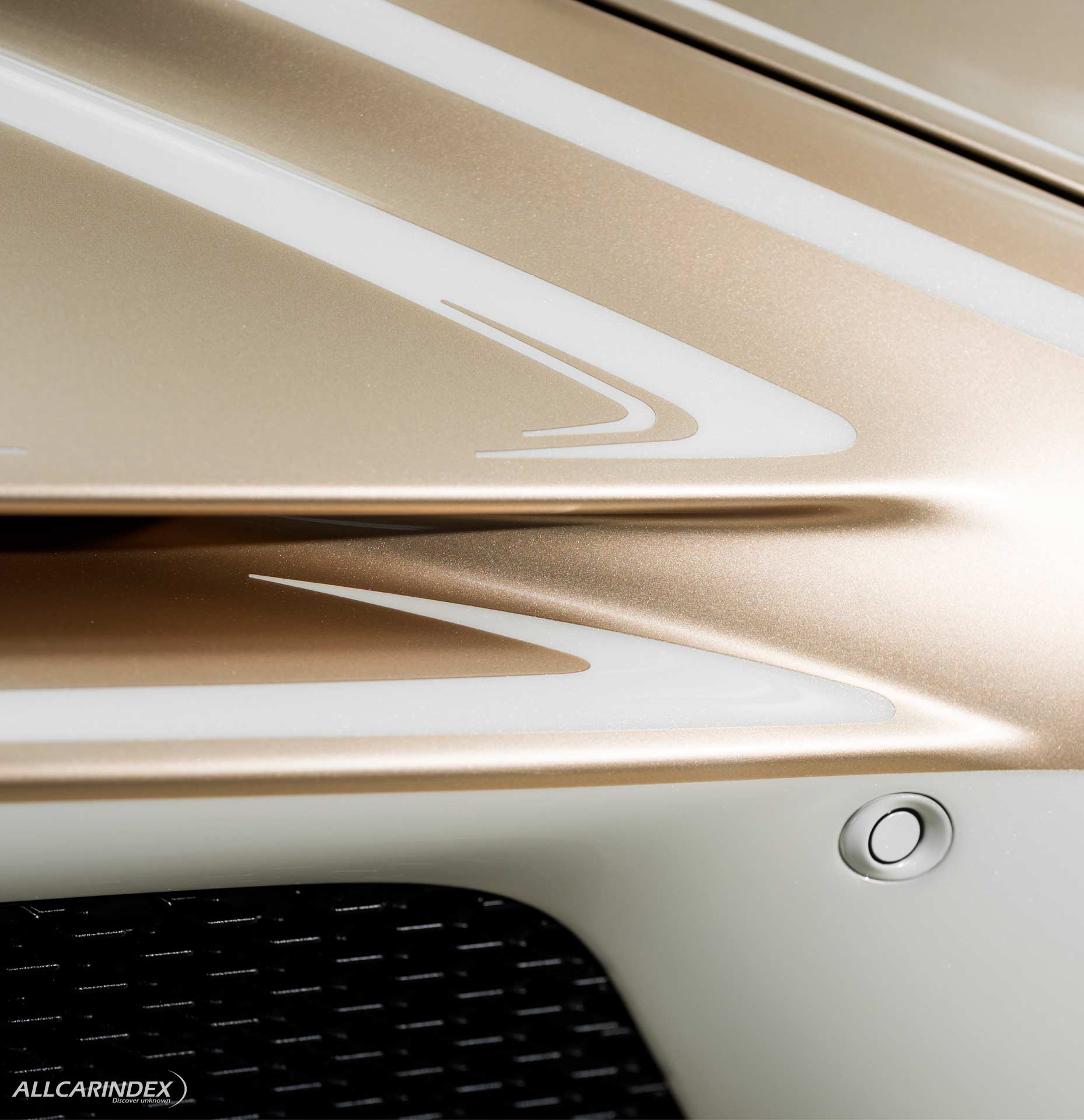 Developing the final color palette required extensive exploration. While the project began with a silver concept, the direction eventually shifted toward varying white tones enriched with bright metallic flakes. This evolution led to the creation of two entirely new bespoke colors: a warm, gold-infused hue for the upper surfaces and a refined warm white for the lower body. The signature white and gold dividing lines that define the car's identity were achieved through hundreds of hours of hand-applied taping, masking, and painting. This meticulous process extended to the diamond-cut alloy wheels, which feature a specially curated paint mixture to mirror the bodywork.