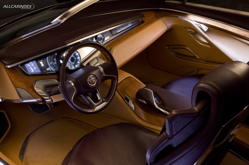 a prominent, polished aluminum windshield frame serves as in important structural element of the vehicle, as well as aesthetic one, recalling classic open cars of the past. additional exterior cues, including a shield grille and vertical lighting elements, are pure cadillac, but suggest a more organic interpretation of the brand’s signature design language that emphasizes the artistic and natural sides of it. the body sides, for example, are more rounded, sweeping upward. bright work is used to bring contrast to the deep paint color, but plays a more supporting role.