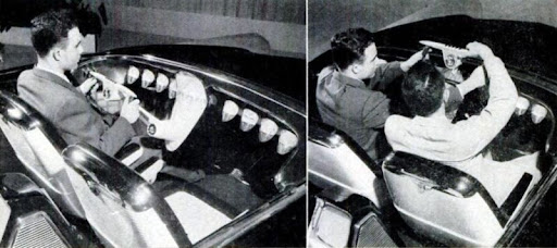 Around the same time, in September of 1955, Ford also released photos of a futuristic car design powered by a gas turbine engine. This prototype show car, showcased at the 1956 Chicago Extravaganza, featured innovative design elements like a large glass bubble roof serving as windows and windshield, a hinged canopy, swiveling front seats, and half-doors for easy passenger entry and exit. Modern features included a radiotelphone, pushbutton ignition switch, padded dash, and even a television set behind the front seats.