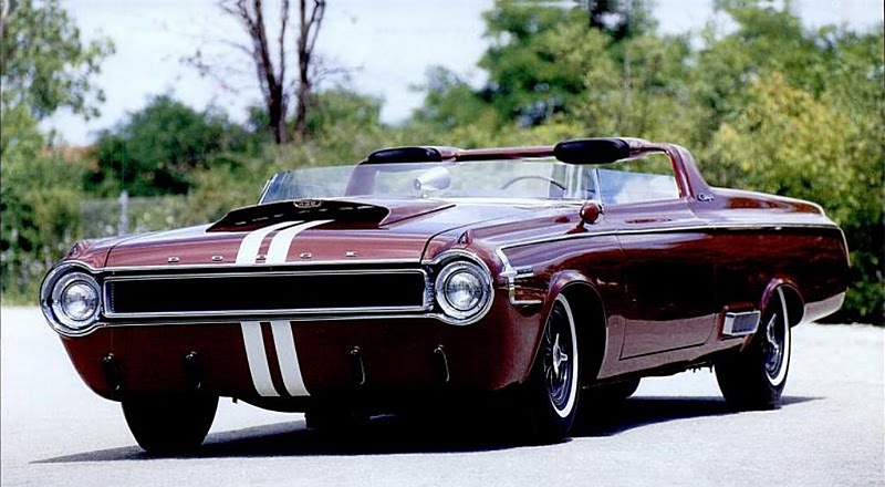 In 1964, Dodge introduced the Charger specialty show car, which was based on the 1964 Dodge Polara convertible. The Charger featured a range of custom elements, including a cut down windshield, roll bar with built-in headrests, hood scoops, side rectangular exhaust ports, and a 365 horsepower, 426 cubic inch V-8 engine. The custom Charger rolled on Halibrand magnesium wheels wrapped in Goodyear Wingfoot high-performance tires. Inside the charcoal-gray leather 2-seat cockpit, the Charger featured a deep-dish walnut wood steering wheel, wood gear shift selector handle, and passenger grab handle. Atop a unique divider between the seats sat an 8,000-rpm tachometer.
