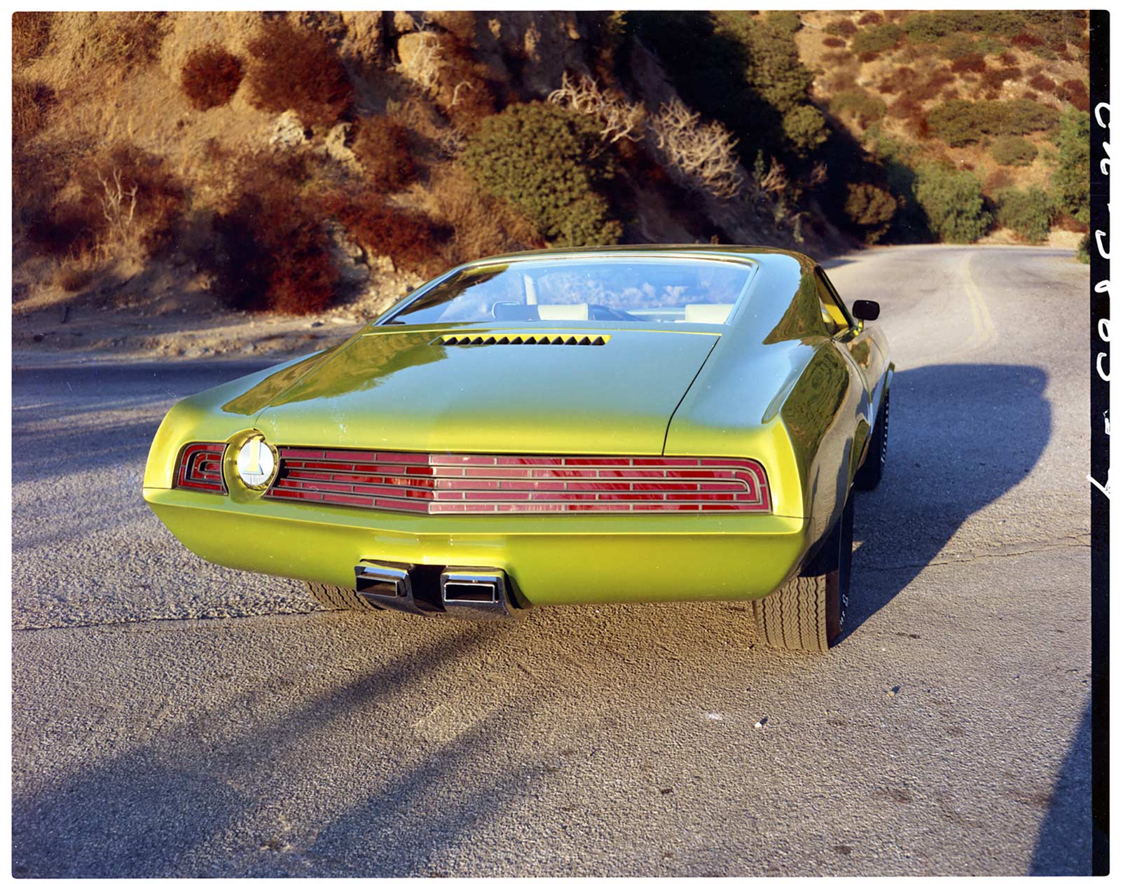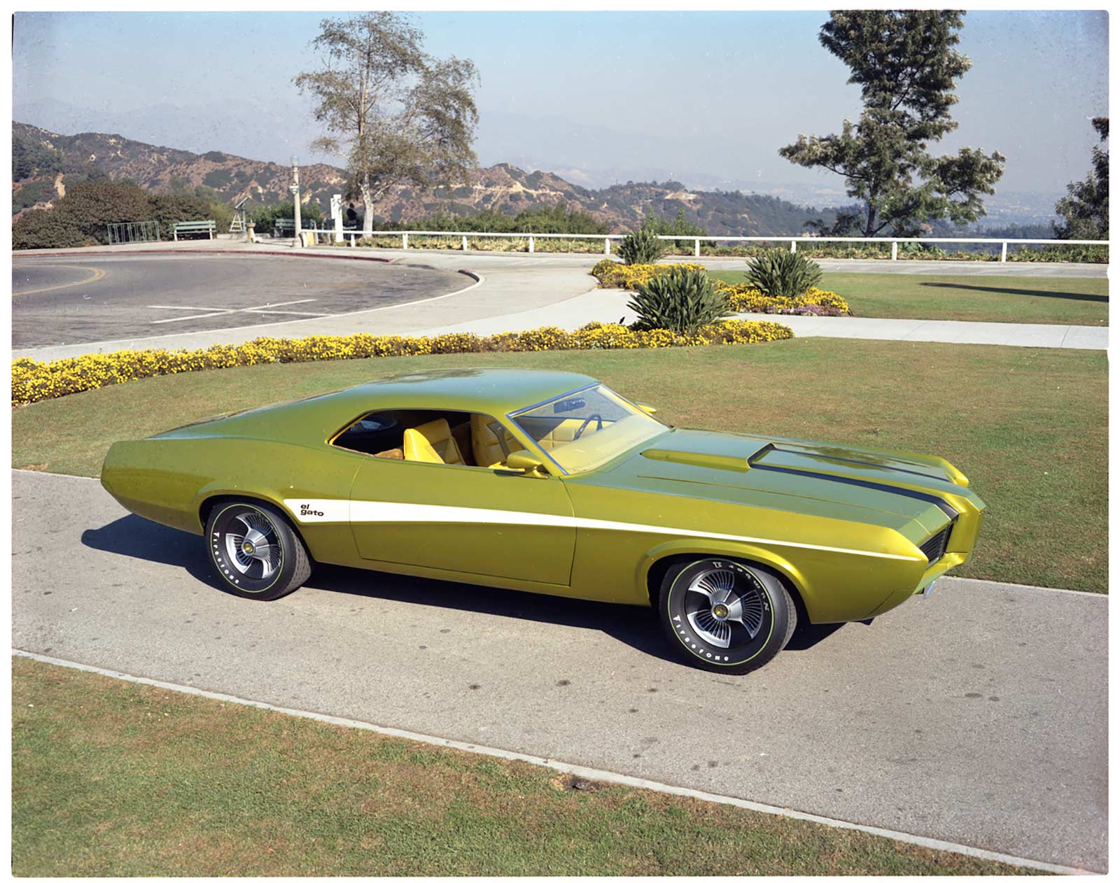 The El Gato was an experimental modification of the 1970 Cougar. Both the windshield and the sloping back window were at rakish angles to enhance the low, sleek look of the car, with this being the first appearance of a fastback roof on a Cougar. The unique green body finish was lighter in hue above the sculptured character line, with a tapered paint stripe calling attention to the color break.
